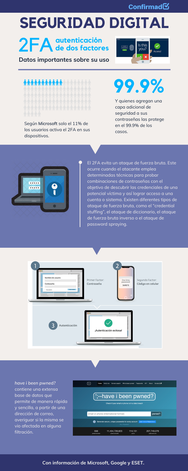 Activa la autenticación en dos pasos (2FA) en todas tus cuentas importantes.