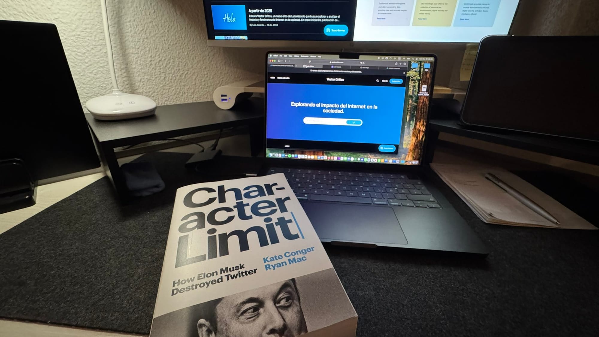 - Libro: "Character Limit: How Elon Musk Destroyed Twitter". Este libro escrito por dos experimentados reporteros del New York Times relatan paso a paso, cómo Elon Musk tomó el control y cambió el rumbo de la plataforma de microblogging para convertirla en un coliseo donde se vive la guerra cultural. No do más detalles, pero es un libro que vale la pena leer. Lo compré en amazon (aquí pueden verlo).